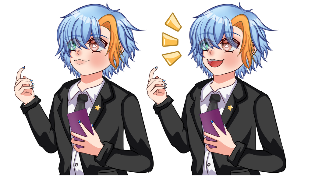 En total será un pack con 16 imágenes (cada expresión contará con pestañeo y boca abierta/cerrada)